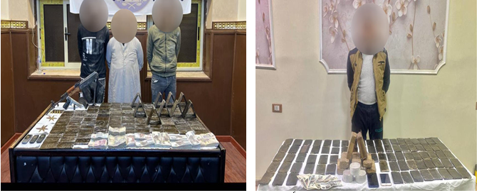 وعقب تقنين الإجراءات أمكن ضبطه بمحيط مسكنه، وبحوزته 2 قطعة لجوهر الحشيش – الأدوات المستخدمة فى تصنيع المواد المخدرة – عملات "محلية وأجنبية".