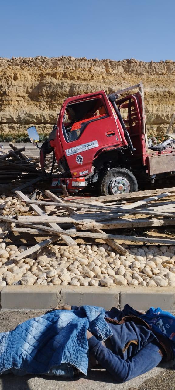 الصور الأولى لحادث انقلاب سيارة محملة بالعمال ومصرع 4 منهم أعلى الطريق الأوسطي