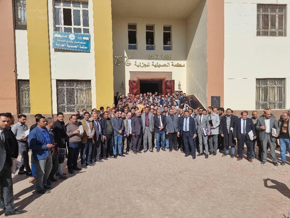 نظم، اليوم الخميس، العشرات من محامي الشرقية وقفة صامتة أمام محكمة الحسينية الجزئية، اعتراضًا على التسجيل في منظومة الفاتورة الإلكترونية، بالتزامن مع الوقفات الاحتجاجية التي نظمها المحامين بالنقابة العامة بالقاهرة والنقابات الفرعية بالمحافظات.