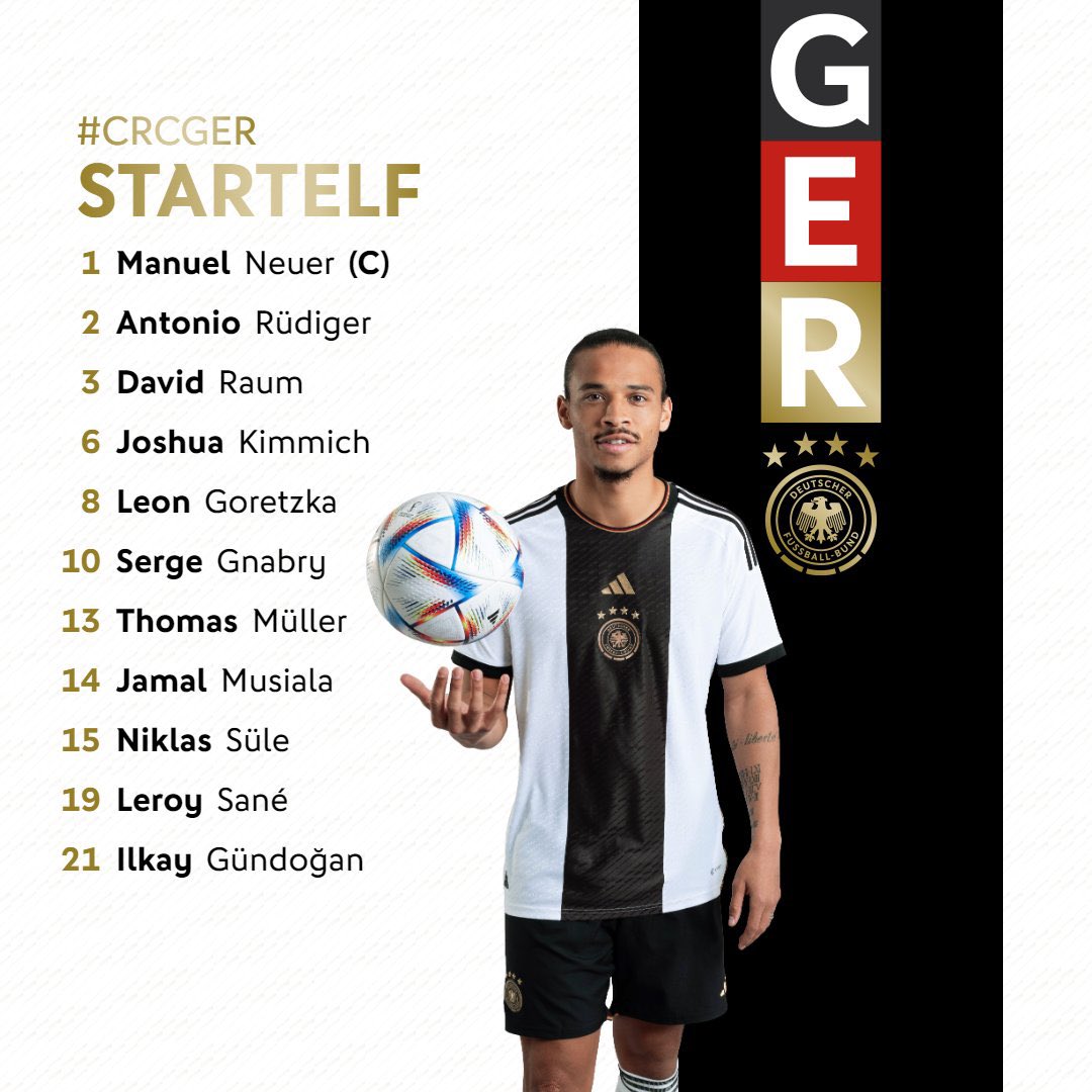 كما أعلن هانسي فليك المدير الفني لمنتخب ألمانيا تشكيل اللاعبين لمواجهة كوستاريكا في إطار منافسات الجولة الثالثة والأخيرة من دور المجموعات في كأس العالم 2022.