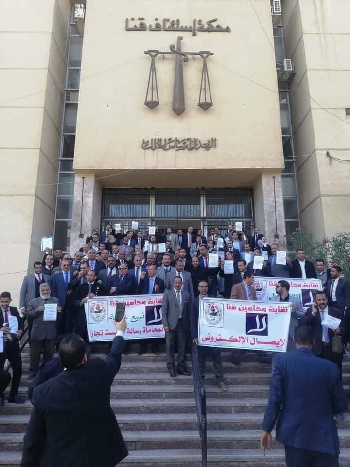 نظم اليوم الخميس العشرات من محامين محافظتي سوهاج وقنا، وفقتين احتجاجيتين أمام مقر نقابة سوهاج ومجمع محاكم قنا، اعتراضًا على التسجيل في منظومةالفاتورة الإلكترونية، بمشاركة، بالتزامن مع الوقفات الاحتجاجية التي نظمها المحامين بالنقابة العامة بالقاهرة والنقابات الفرعية بالمحافظات.