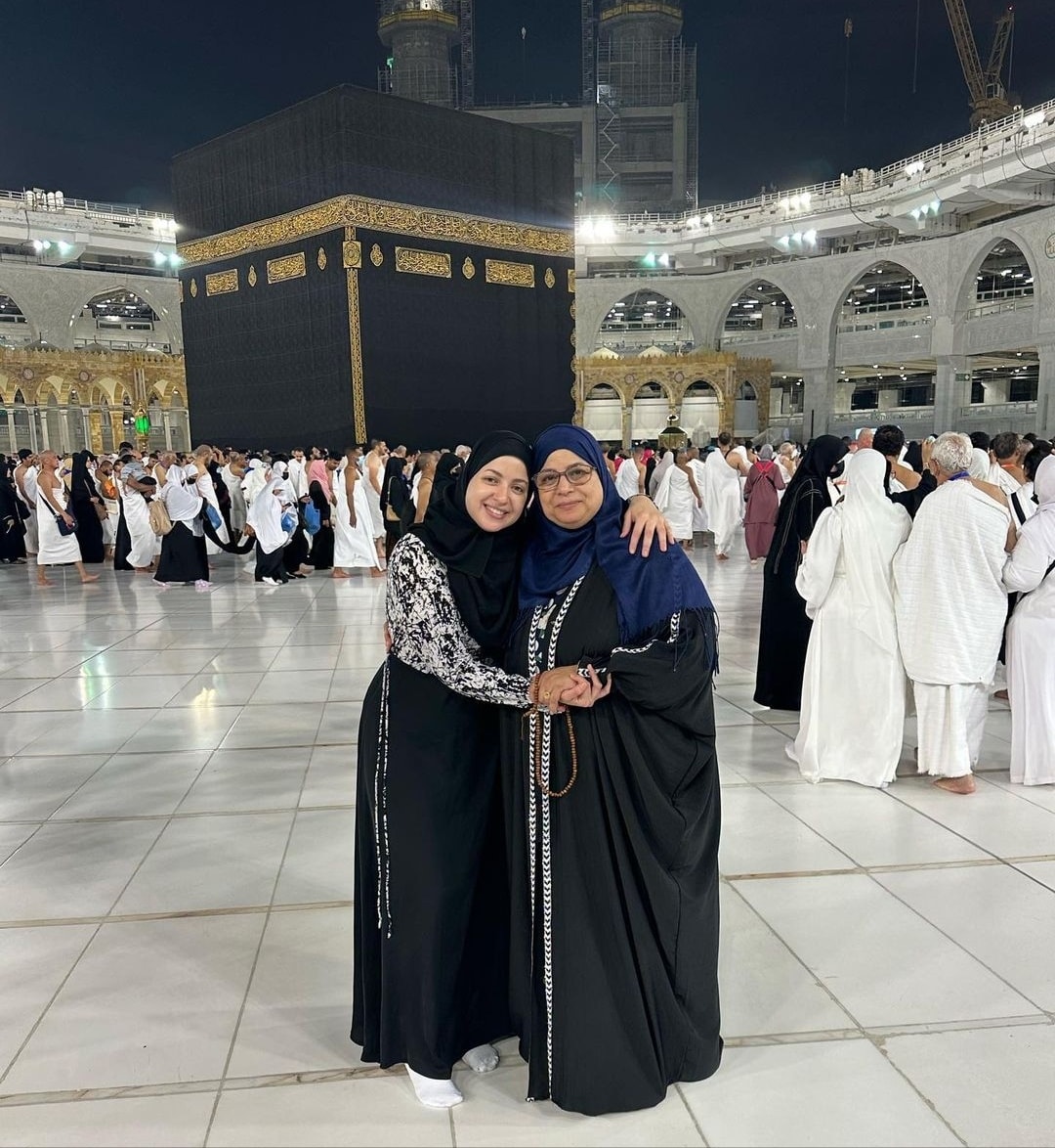 منى فاروق تؤدي مناسك العمرة برفقة والدتها