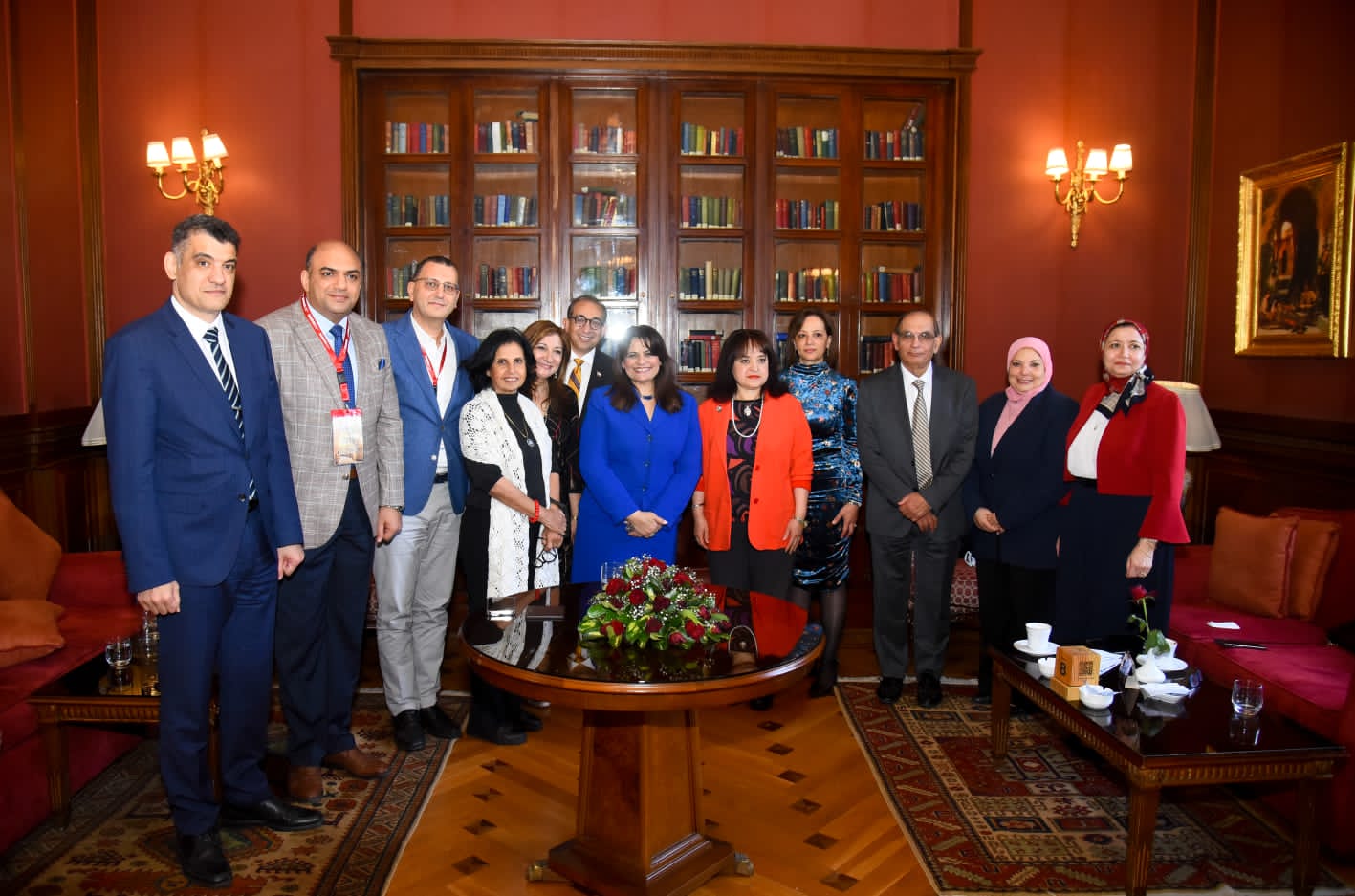 على هامش فعاليات النسخة السابعة للمؤتمر الدولي السنوي للأطباء والعلماء المصريين بالخارج والداخل، بمدينة الأقصر والمنعقد تحت رعاية السفيرة سها جندي وزيرة الدولة للهجرة وشئون المصريين بالخارج، خلال الفترة من ٣٠ نوفمبر إلى ٢ ديسمبر ٢٠٢٢، عقدت الوزيرة لقاء مع عدد من كبار الأطباء المصريين بالخارج المشاركين في المؤتمر لبحث سبل الاستفادة من خبراتهم في دعم جهود تطوير القطاع الطبي وقطاع البحث العلمي بمصر، بحضور الدكتور حسين خالد أستاذ طب الأورام بالمعهد القومي للأورام وزير التعليم العالي الأسبق ورئيس المؤتمر، والأستاذة الدكتورة ابتسام سعد الدين أستاذ علاج الأورام بطب قصر العيني، وسكرتير عام المؤتمر، ولفيف من كبار الأطباء وأساتذة الجامعة المصريين بالخارج.
