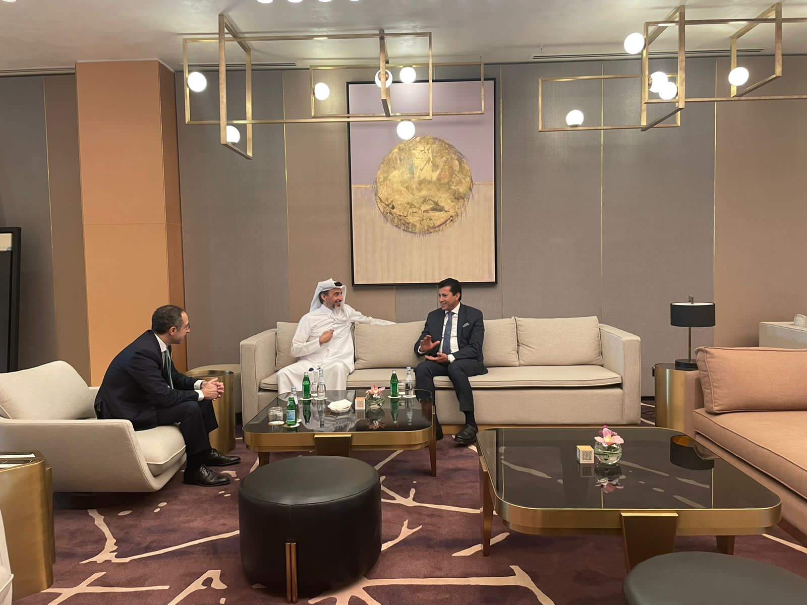 وقدم وزير الشباب والرياضة التهنئة إلى نظيره القطرى على التنظيم الرائع لمنافسات بطولة كأس العالم لكرة القدم، والاستعدادات القصوى المُتخذة من قبل اللجنة المنظمة لاستقبال الضيوف والجماهير المؤازرة لمنتخباتهم الوافدين من مختلف دول العالم.