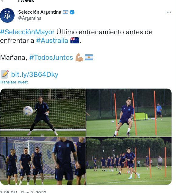 أنهي لاعبو منتخب الأرجنتين التمرين الختامي قبل مواجهة منتخب أستراليا غدا في دور ال16 وتقام المباراة في التاسعة مساء بتوقيت مصر علي ستاد أحمد بن علي.