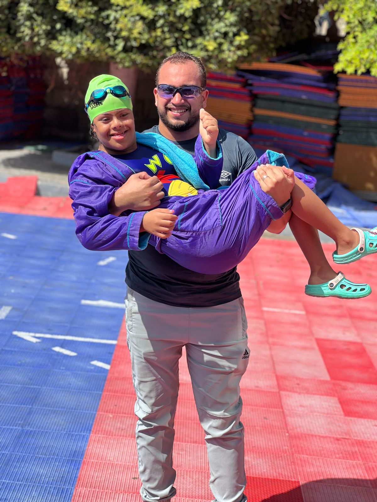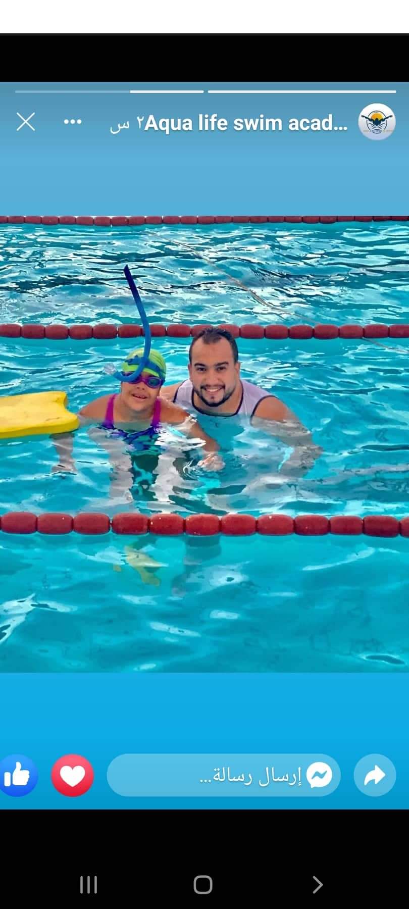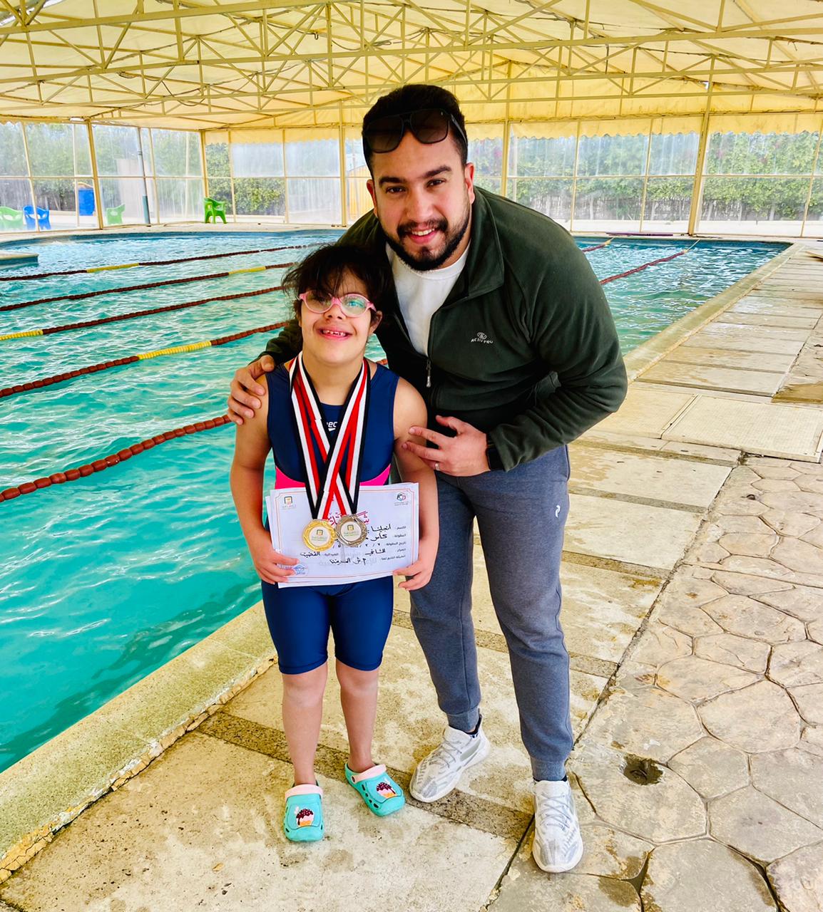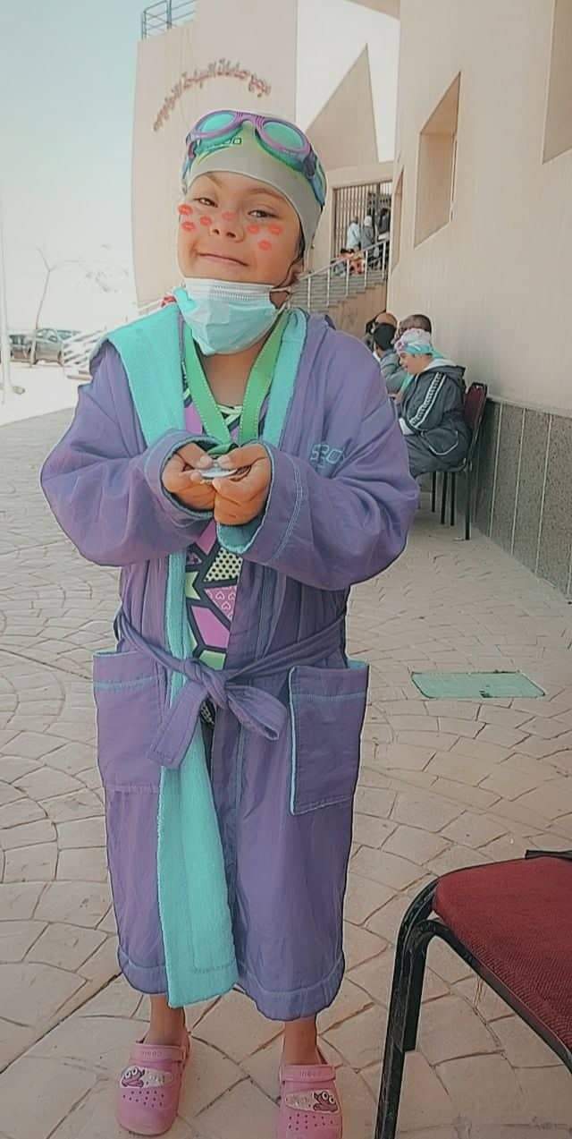 وتابعت " تفاجأنا بها متفوقة جدا في السباحة، مما دفع مدربها أن يطلب مننا بعد أشهر أن تشارك في بطولة كأس مصر التابعة للإتحاد الذهني لمتحدي الإعاقات تحت سن 12 عاما و التي أقيمت منذ حوالي خمس سنوات في الأكاديمية البحرية ولكن أول عام لم يحالفها الحظ لأنها كانت خائفة من الجماهير والازدحام"