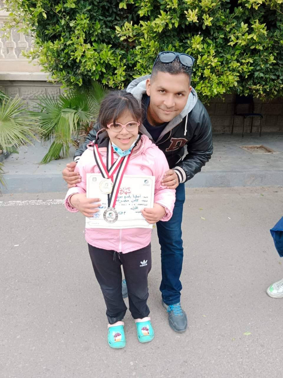 الطفلة "أنجلينا باسم" من متلازمة داوون، والدها توفى وهى ذات الخمس سنوات، وتربعت أكثر من مرة على المركز الأول والثاني في مسابقات السباحة في بطولات الجمهورية للإتحاد الذهني للإعاقات كما أنها عازفة لآلة الأرج مبدعة وقد تربعت على المركز الأول في مهرجان الإبداع لذوي الإعاقة عام 2020