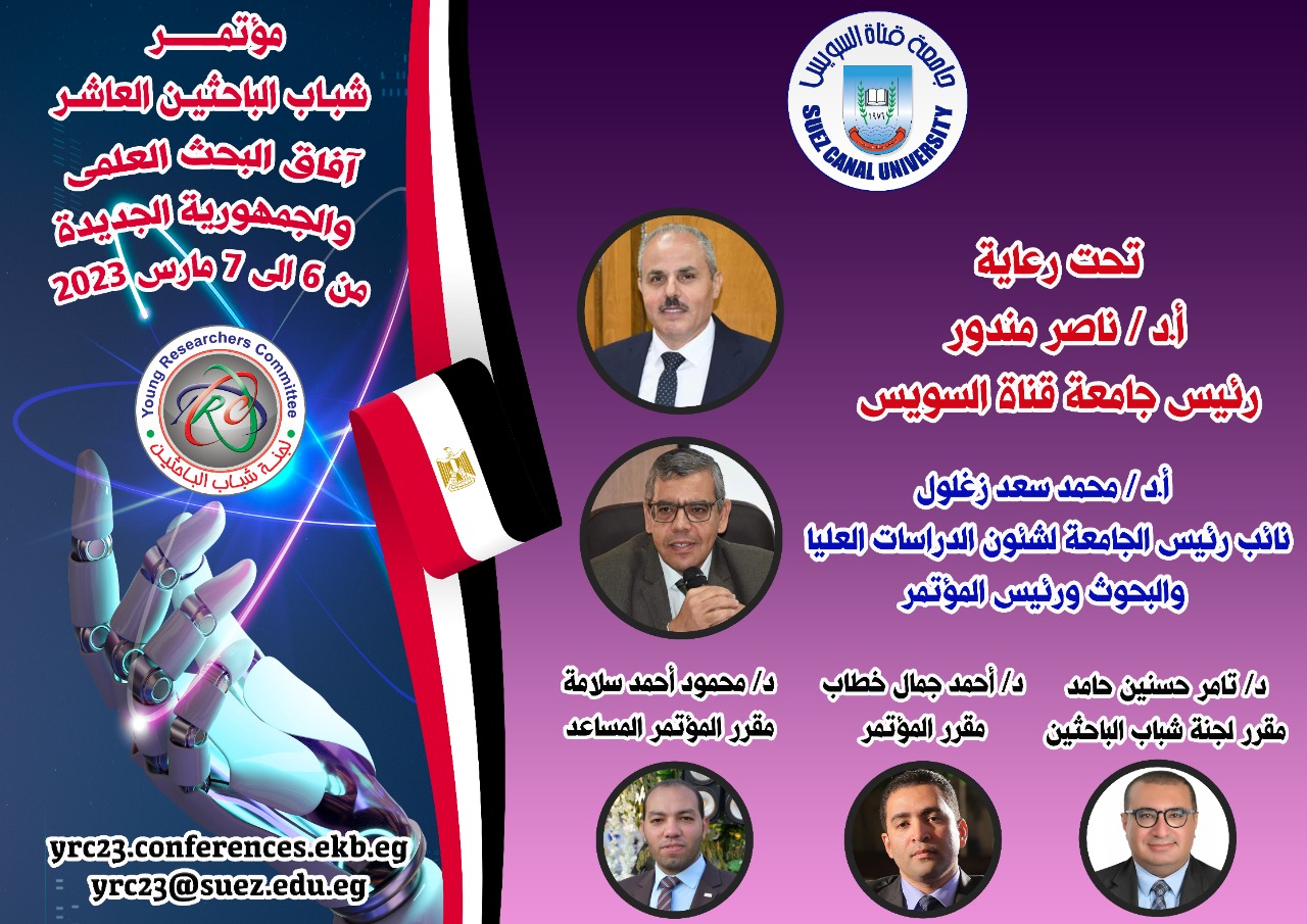 و يأتى المؤتمر بإشراف عام الدكتور محمد سعد زغلول نائب رئيس الجامعة لشئون الدراسات العليا والبحوث ورئيس المؤتمر والدكتور تامر حسنين حامد مدير وحدة نظم المعلومات الإدارية بمركز تطوير التعليم ومقرر لجنة شباب الباحثين واشراف تنفيذي الدكتور أحمد خطاب المدير التنفيذي لمركز التسويق وتنمية الموارد بجامعة قناة السويس ومقرر المؤتمر والدكتور محمود سلامة مقرر المؤتمر المساعد.