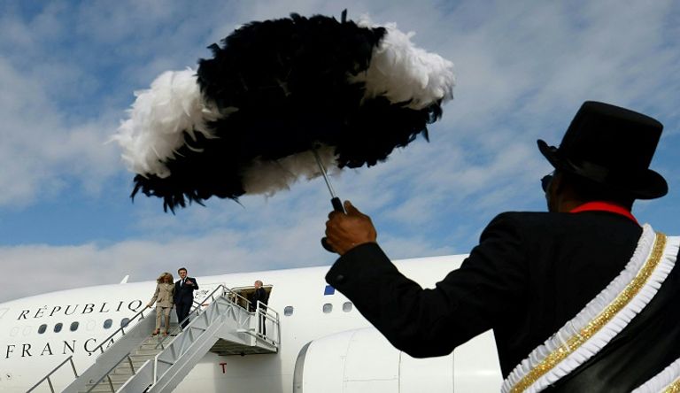 لم تكد قدم الرئيس الفرنسي إيمانويل ماكرون تطأ مدينة نيو أورلينز بولاية لويزيانا حتى فوجئ بنفسه يرقص برفقة زوجته بريجيت على أرض المطار.