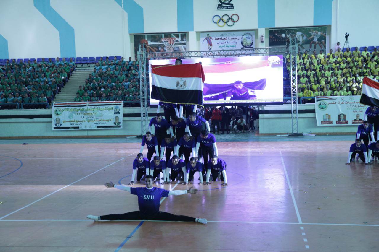 وتضمنت فعاليات حفل الافتتاح طابور عرض الجامعات المشاركة وفقرات رياضية لطلاب كلية التربية الرياضية بإشراف الدكتور أشرف موسى عميد الكلية، وعرض فنى لفرقة الفنون الشعبية بالجامعة، وقام الطالب جمال عوض بكلية التربية الرياضية بترديد قسم البطولة على الجامعات المشاركة في المنافسة.