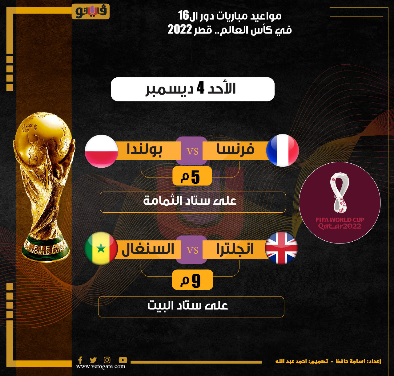 مواعيد مباريات كأس العالم اليوم الأحد 4-12-2022 الأحد 04/ديسمبر/2022 - 12:10 ص 12/4/2022 12:10:20 AM كأس العالم شارك طباعة 18 حجم الخط شارك طباعة مباريات كأس العالم مباريات كأس العالم اليوم مواعيد مباريات كأس العالم