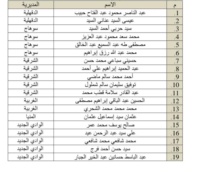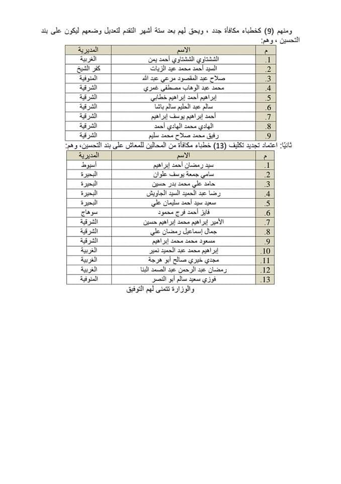اعتمد الدكتور محمد مختار جمعة وزير الأوقاف 41 خطيب مكافأة من المحالين للمعاش، منهم (28) خطيبًا جديدًا، وتجديد تكليف 13، وبيانهم كالتالي: