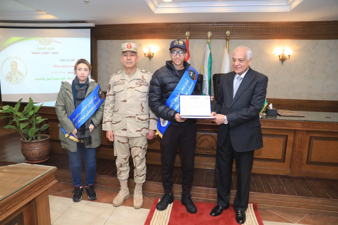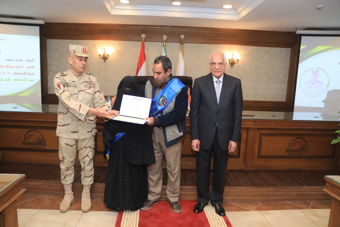 وأكد المحافظ خلال التكريم أن أهالى وأسر الشهداء لهم كل الفخر والعزة لما قدمه أبناؤهم وذويهم من تضحيات من أجل رفعة الوطن معربا عن اعتزازه بالمشاركة في تكريم أسر أولئك الأبطال تقديرا وتخليدا لذكراهم بعد أن قدموا المثل والقدوة في الانتماء والاعتزاز والدفاع عن تراب الوطن.