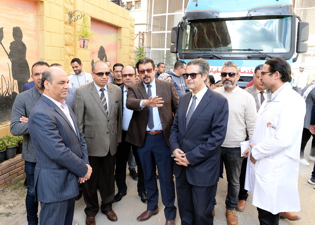 رافقه خلال الجولة الدكتور محمد عبد العظيم عميد كلية الهندسة الدكتور أشرف شومة عميد كلية الطب، الدكتور محمد حجازى المدير التنفيذى للمستشفيات المراكز الطبية.
