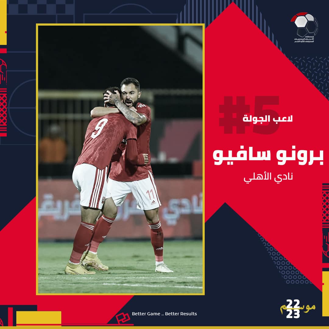أعلنت رابطة الأندية المحترفة، اختيار البرازيلي برونو سافيو جناح الفريق الأول بالنادي الأهلي، كأفضل لاعب خلال مواجهات الجولة الخامسة من مسابقة الدوري الممتاز، بناءً على اختيار وتصويت المتابعين على منصات التواصل الاجتماعي.