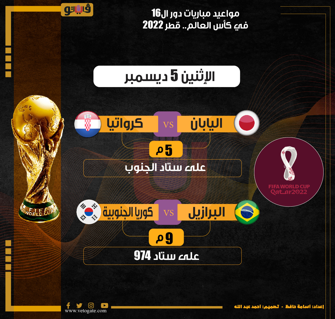 مواعيد مباريات كأس العالم اليوم الاثنين 5-12-2022 الإثنين 05/ديسمبر/2022 - 12:11 ص 12/5/2022 12:11:24 AM كأس العالم شارك طباعة 18 حجم الخط شارك طباعة مباريات كأس العالم مواعيد مباريات كأس العالم مباريات كأس العالم اليوم