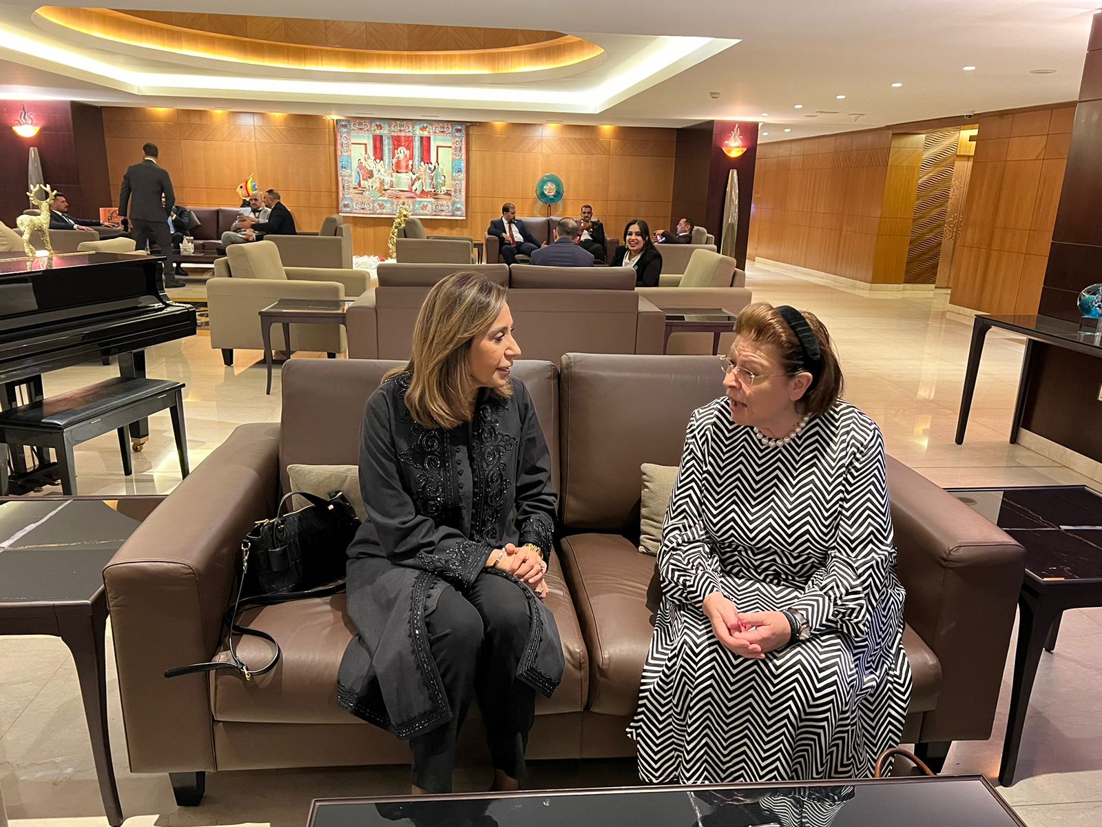 واجتمعت وزيرة الثقافة، والدكتورة لينا ميندوني، وزيرة الثقافة والرياضة اليونانية، حيث تبادل الجانبان، الحوار إزاء دعم آليات، وتعزيز اُطر التبادل الثقافي بين البلدين، وكان ذلك بحضور السفير، وليد محمد إسماعيل، سفير مصر لدى العراق.