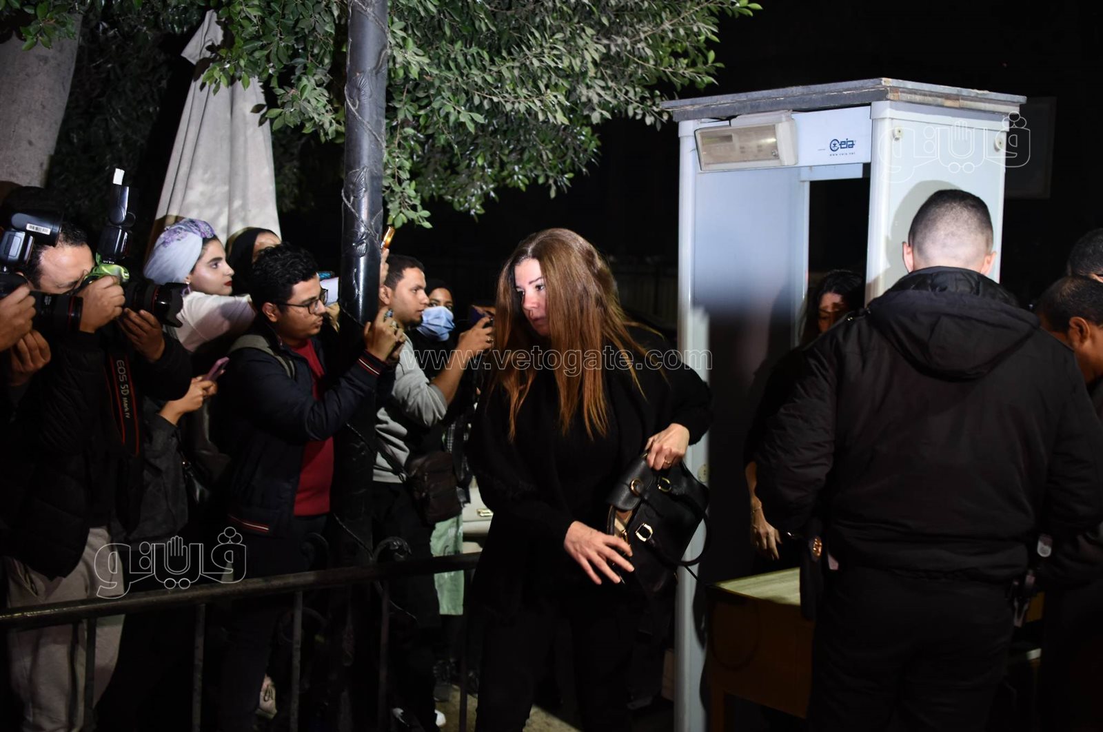 وصول أحمد قذاف الدم ورانيا فريد شوقي إلى عزاء مفيد فوزي بالفيديو والصور