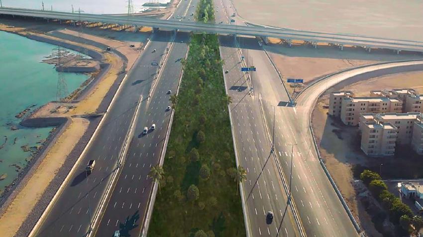 وتضمنت أعمال الطرق تنفيذ طبقة أساس أسفلتيه نحو ١.٣ مليون م٣، وطبقة رابطة بمسطح ٣.٥ مليون متر مسطح وطبقة سطحية ٢.٥ مليون متر مسطح، وكذلك تم تركيب اللوحات الارشادية وتم التنسيق مع وزارة الداخلية بشأن الكمائن وكاميرات رصد المخالفات ورادارات السرعة حفاظًا على آمن وسلامة المستخدمين.
