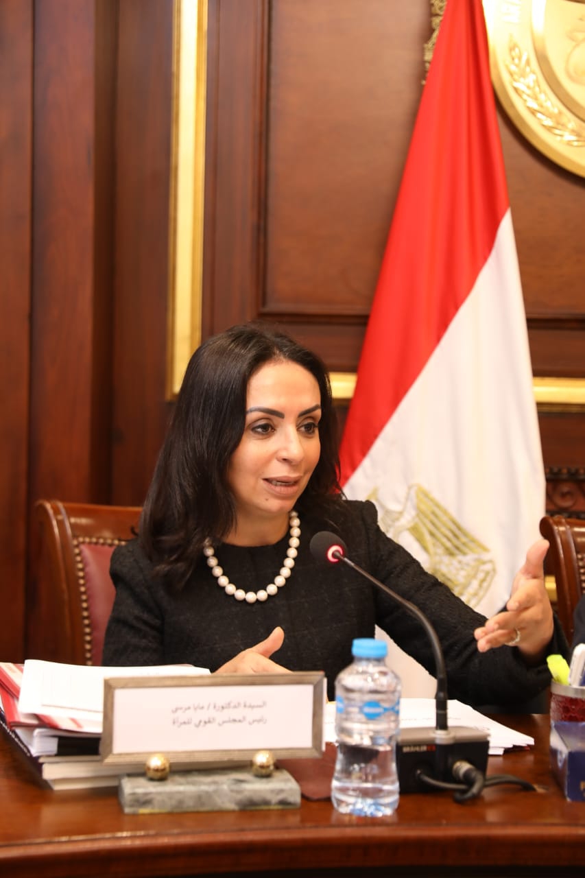 واستعرضت الدكتورة مايا مرسي وقامت بتسليم اللجنة الأوراق الخاصة بجهود مصر في مجال القضاء علي العنف ضد المرأة بكافة أشكاله، من بينها استراتيجية حقوق الإنسان، والاستراتيجية الوطنية لتمكين المرأة 2030، بالإضافة الى الاستراتيجية الوطنية للقضاء علي العنف ضد المرأة والتي أقرها مجلس الوزراء بمشاركة عدة وزارات ،و التقرير الخاص بالاستراتيجية الذي تم اطلاقه في عام 2021.. و " مسح التكلفة الاقتصادية للعنف ضد المرأة" والذى تعتبر مصر هي الدولة العربية الأولى في اجراءه، والذى أظهر أن التكلفة الاجمالية التي تتحملها النساء وأسرهن بسبب العنف تبلغ 2.17 مليار جنيه مصري، و7.888 مليون إمراة يعانين من العنف بجميع أشكاله سنويًا، و18% من النساء (أعمارهن بين 18و64) تعرضن لعنف منزلى من أحد أفراد الأسرة.