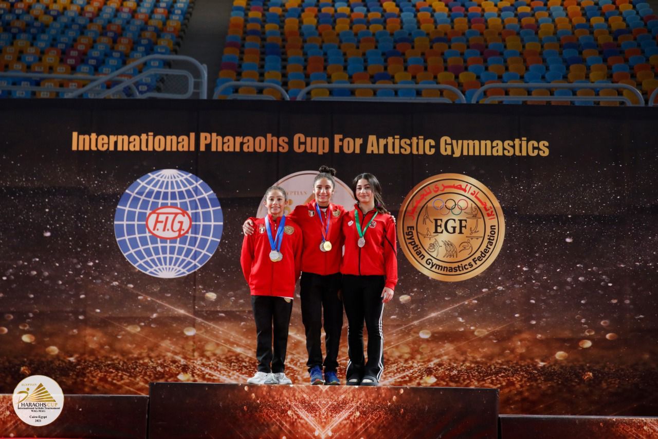 أسفرت نتائج بطولة كأس الفراعنة للجمباز الفني آنسات كبار وناشئات المقامة حاليا بالصالة المغطاة باستاد القاهرة الدولي بمشاركة 10 دول وهي:مصر والمجر والبرتغال وتونس وسوريا واليمن وقبرص والهند وقطر وجورجيا عن