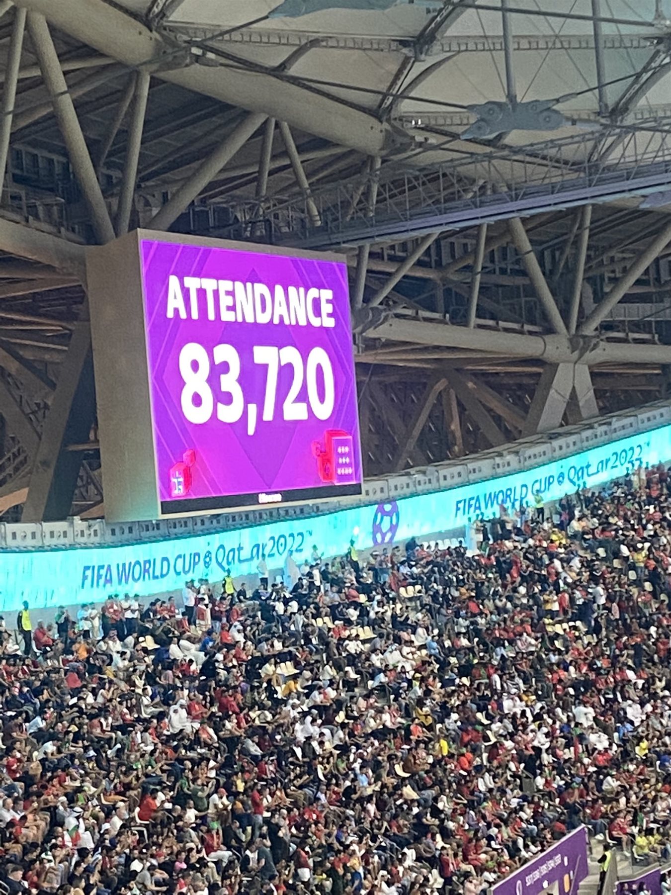 شهدت مباراة منتخب البرتغال أمام نظيره سويسرا، المقامة على ستاد لوسيل، في ختام مواجهات الدور ثمن النهائي لبطولة كأس العالم 2022، حضورا جماهيريا غفيرا.