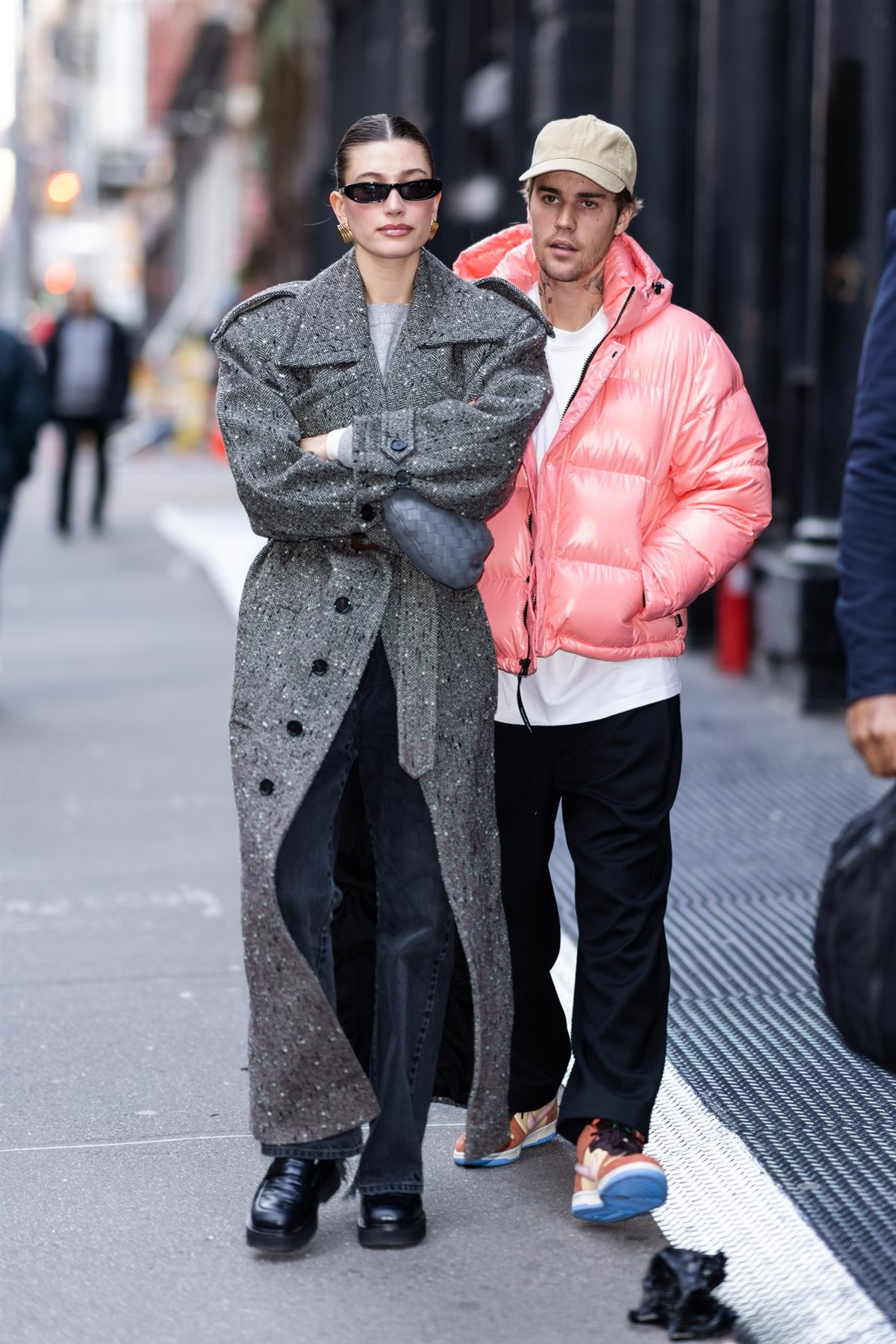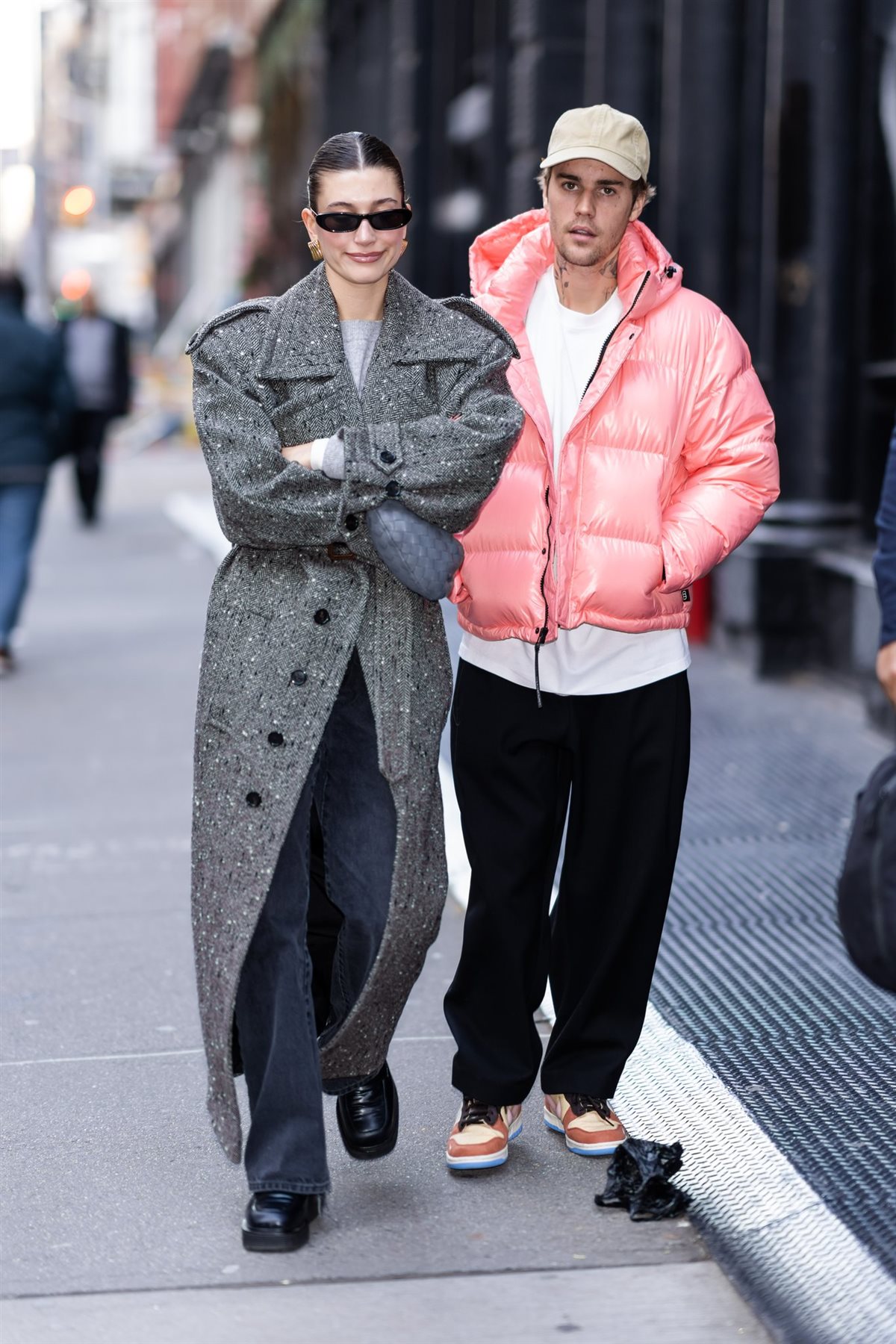 وتألقت هايلي بيبر عبر ارتدائها بالطو باللون الرمادي، أظهر أناقتها المعهودة، ونسقته مع بنطال جينز وتيشيرت رمادي، فيما اختار جاستن بيبر ألوان صارخة، حيث ظهر بجاكت منفوخ وردي اللون وبنطال أسود وتيشيرت أبيض.