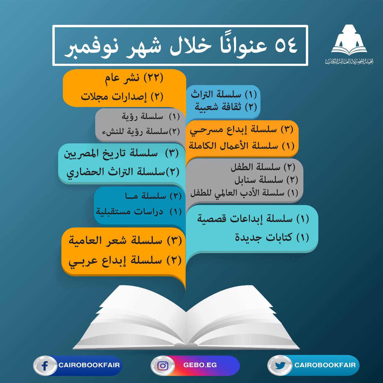 هيئة الكتاب تصدر 54 عنوانًا بسلاسلها في نوفمبر الماضي