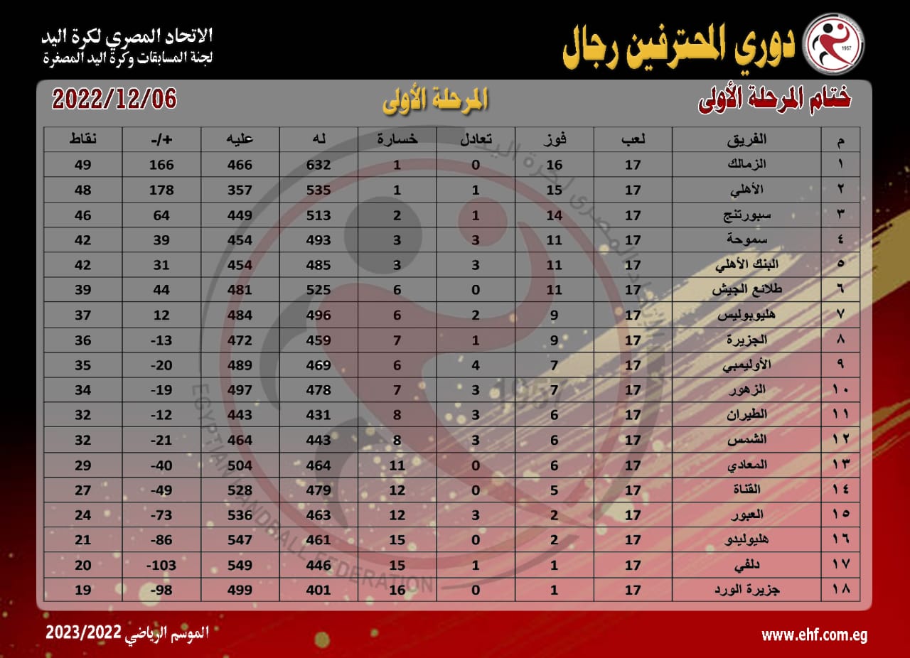 أسدل الستار أمس الثلاثاء على منافسات المرحلة الأولى من دوري المحترفين لكرة اليد رجال، للموسم الحالي 2022-2023.