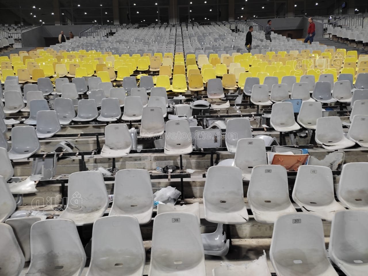 وشهدت مدرجات ملعب إستاد برج العرب آثار تكسير كراسي المنطقة المخصصة لجماهير نادي الزمالك خلال مباراة الفريق أمام المصري والتي انتهت بالتعادل الإيجابي 2-2.