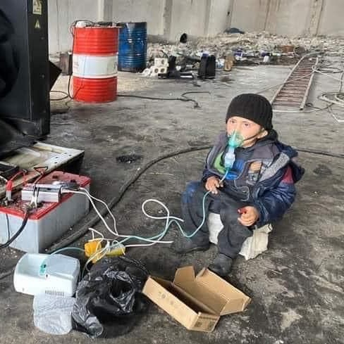 وتُظهر الصور بقاء الطفل رشمال موصولا بمضخّة الأكسجين بجوار مولّد كهرباء.