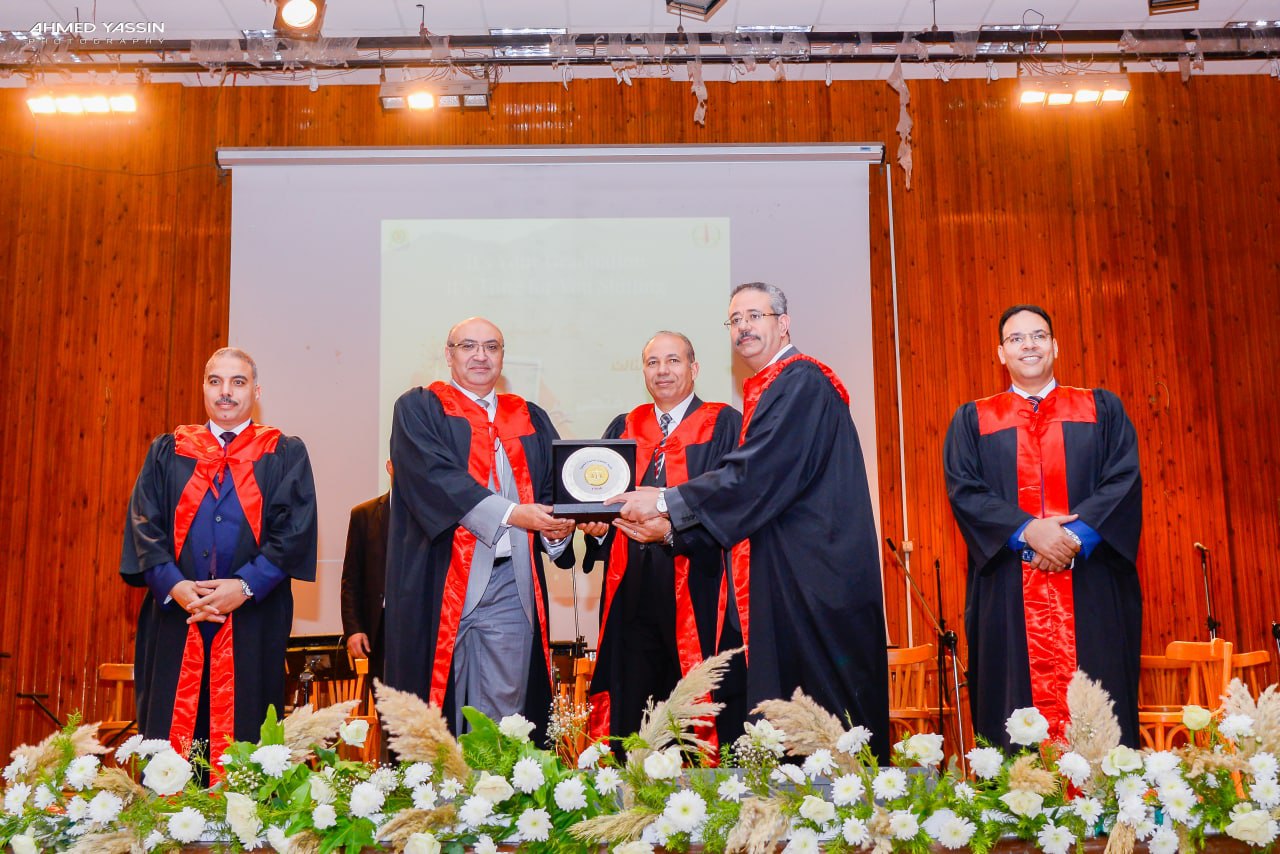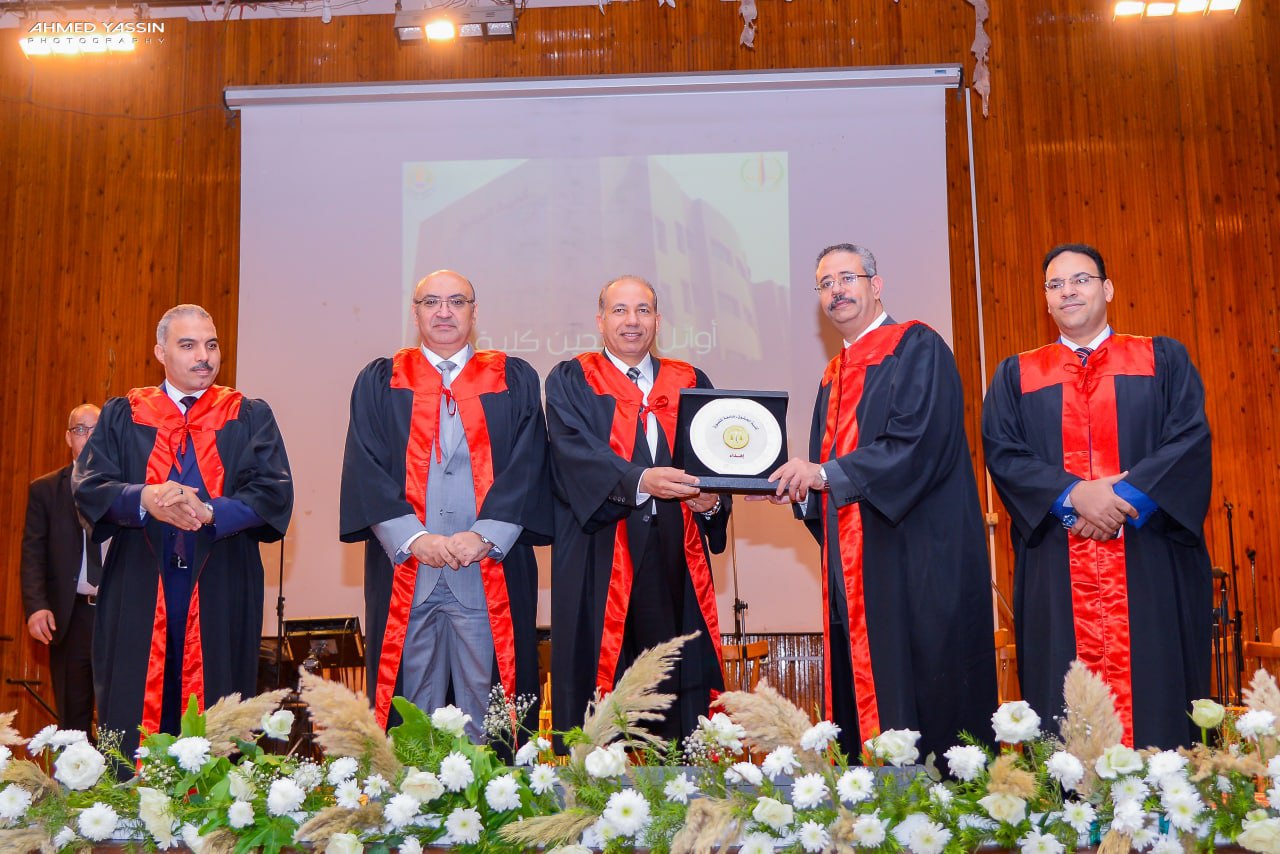 والدكتور تامر محمد صالح _ وكيل الكلية لشئون التعليم والطلاب، والدكتور إبراهيم عبدالله عبد الرؤوف_ وكيل الكلية للدراسات العليا والبحوث، ولفيف من أعضاء هيئة التدريس بالكلية وأعضاء الهيئات القضائية.
