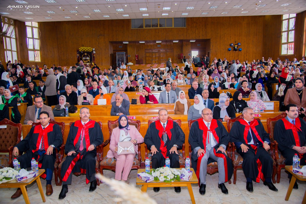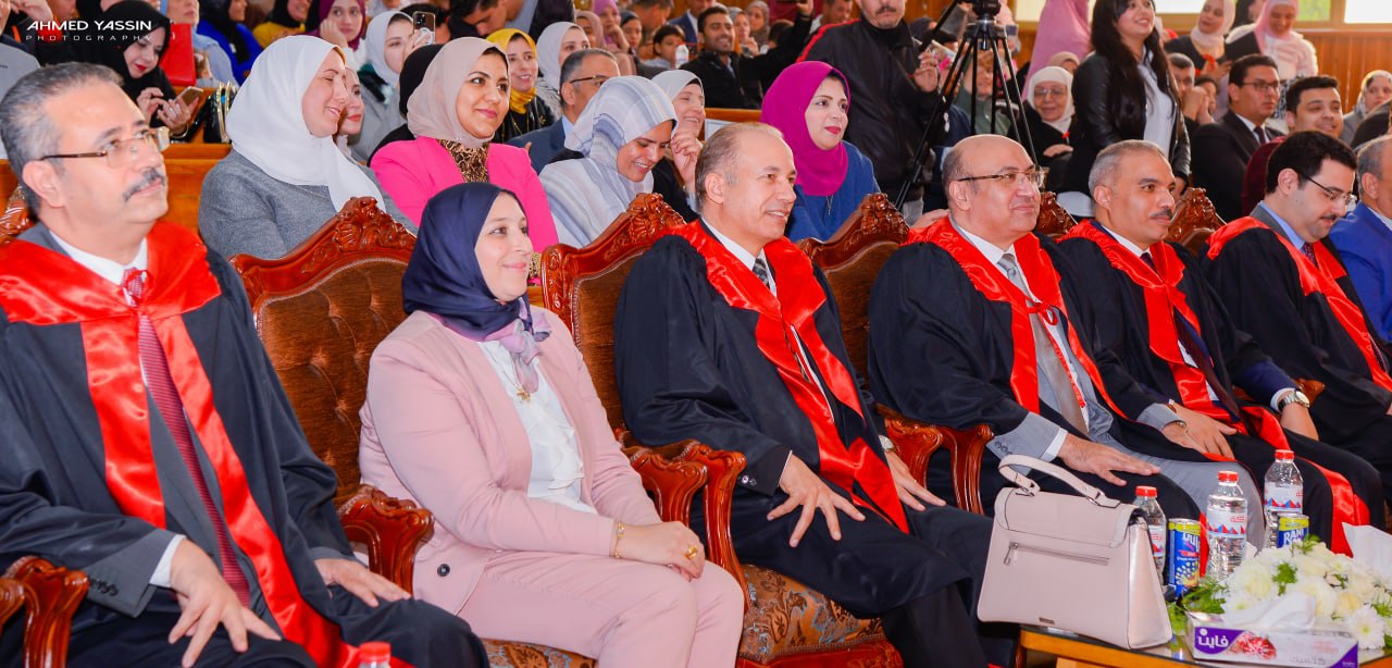 وأكد الدكتور محمد عطيه البيومي نائب رئيس الجامعة لشئون التعليم والطلاب خلال كلمته أن كما قدم سيادته الشكر والتقدير لكافة أعضاء هيئة التدريس لما قدموه لابنائهم من الخريجين للوصول لهذا اليوم الهام والمميز في حياة كل طالب علم كما وجه التحية لكل الاباء والأمهات لما قدموه من تضحيات وجهد لرؤية ابنائهم في يوم التخرج كما اوصى الخريجين بصقل ورفع مهاراتهم العلمية والعملية واستكمال المشوار العلمى باستكمال الدراسات العليا بالكلية.