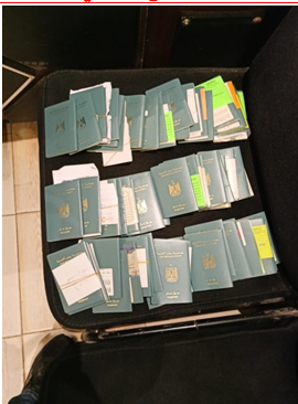ضبط أحد الأشخاص، مقيم بمحافظة السويس؛ لقيامه بإدارة شركة سياحة "بدون ترخيص" كائنة بدائرة قسم شرطة الأربعين بمديرية أمن السويس، وعثر بداخلها على (عدد كبير من "جوازات السفر، بطاقة التطعيم، تذاكر القطارات، تأشيرات عمرة، عدد من تذاكر الطيران، الورق المطبوع به برامج العمرة المختلفة - ختمين خاصين باسم الشركة - جهاز كمبيوتر محمول "لاب توب" مدرج به العديد من الجوازات والتأشيرات وصور لمواطنين - مبالغ مالية عملات "محلية – أجنبية").