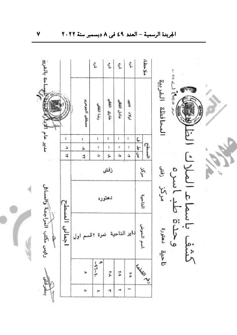 -قرار رئيس الوزراء رقم 4125 لسنة 2022، باعتبار مشروع إقامة وحدة طب الأسرة بناحية دهتورة- مركز ومدينة زفتى محافظة الغربية، من أعمال المنفعة العامة.