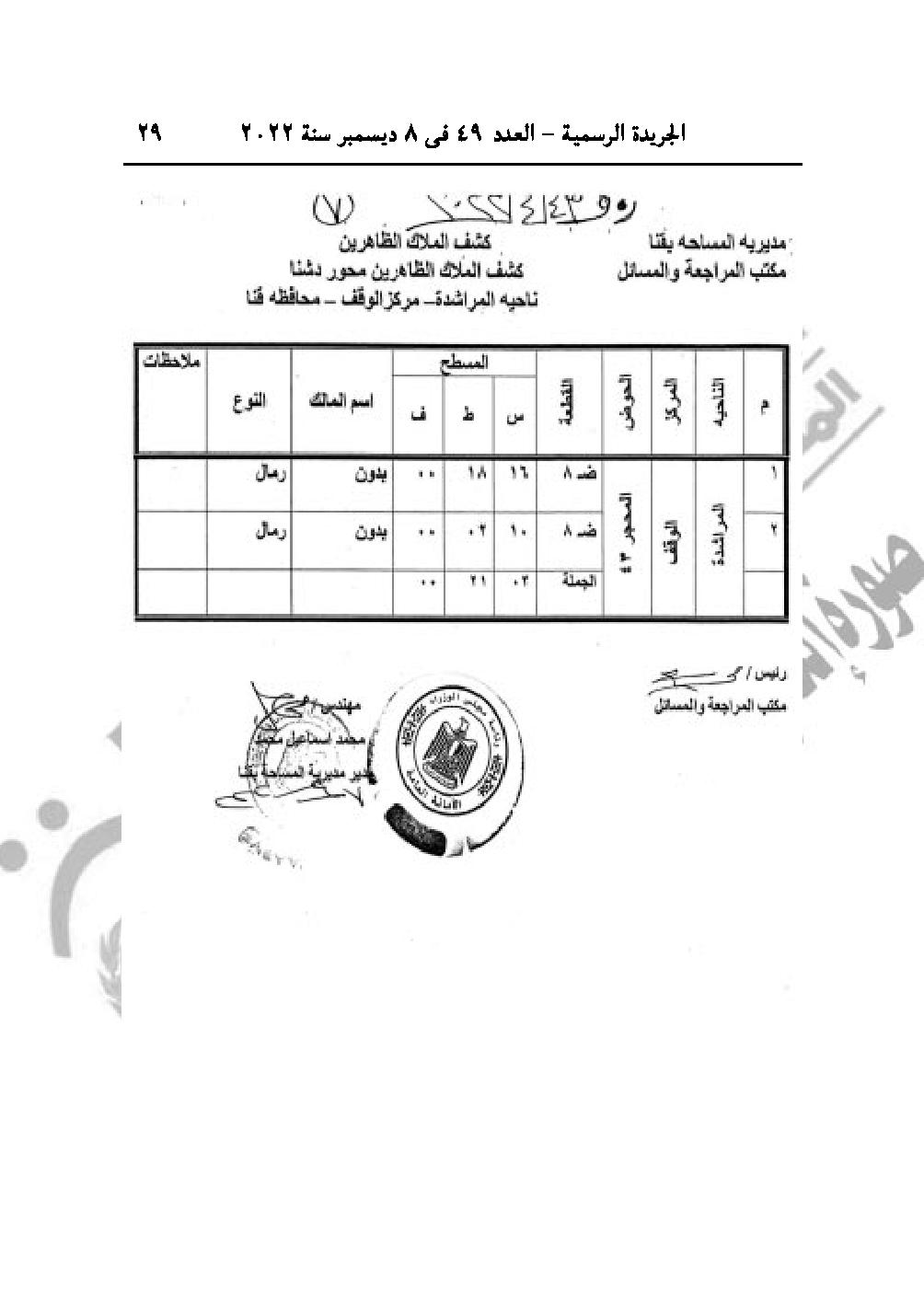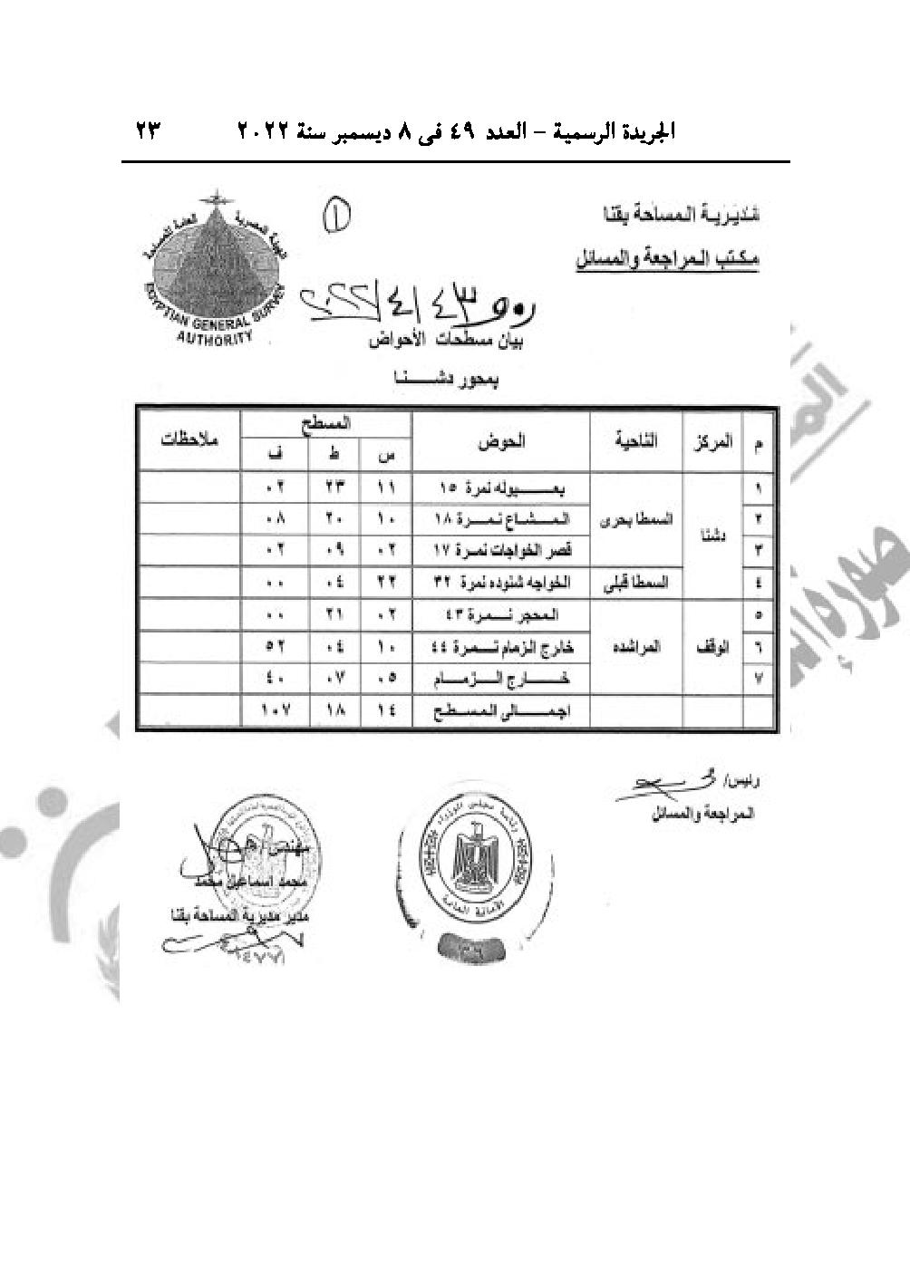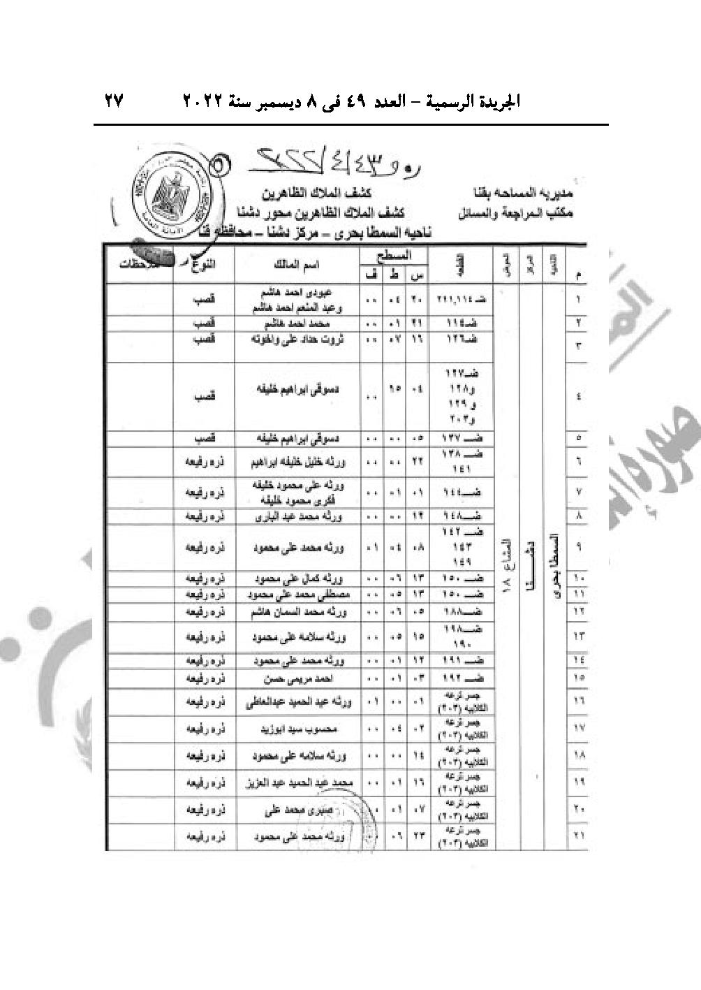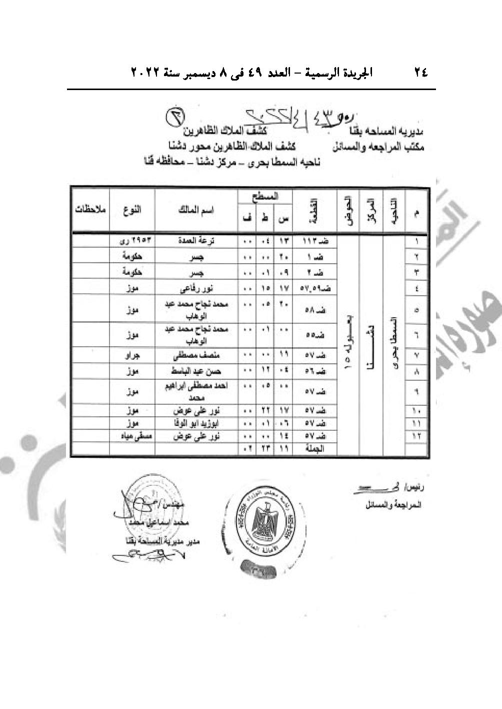 -وقرار رقم 4143 لسنة 2022، باعتبار مشروع إنشاء محور دشنا على النيل في نطاق محافظة قنا، من أعمال المنفعة العامة.