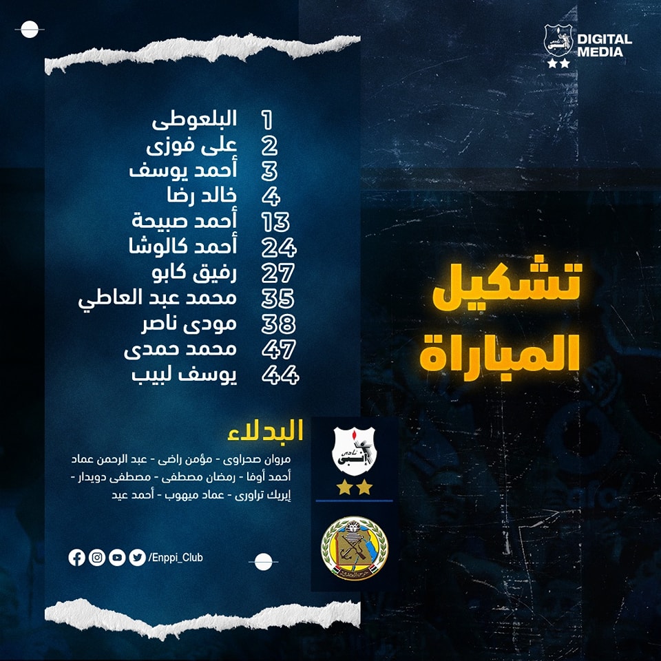 الدوري الممتاز، تشكيل إنبي لمواجهة حرس الحدود