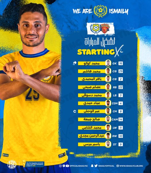 ويتواجد علي دكة بدلاء الاسماعيلي: أحمد عادل - محمد نصر - أحمد محسن - محمد بيومي - محمد بن خماسة - مصطفي فارس - ياو أنور - خالد النبريصي - فراس شواط