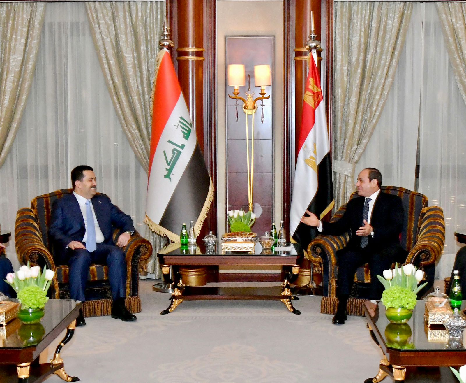 من جانبه؛ أكد محمد شياع السوداني على تقدير بلاده للجهود المصرية الداعمة للشأن العراقي على كافة الأصعدة، والتطلع لتعزيز أطر التعاون مع مصر، سواء على المستوى الثنائي أو في إطار آلية التعاون الثلاثي مع الأردن، وذلك للاستفادة من تجربة النجاح المصرية الملهمة على صعيد بناء مؤسسات الدولة وتحقيق التنمية المستدامة والمشروعات القومية ونقلها إلى العراق، خاصةً في مجال البنية التحتية والطاقة الكهربائية، فضلًا عن تعزيز مجالات التعاون الاقتصادي والتجاري والاستثماري، مع تثمين الدور المصري الداعم للعراق، والذي يمثل عمقًا استراتيجيًا لبلاده على المستوين الإقليمي والدولي، لا سيما فيما يتعلق بمواجهة التحديات المشتركة، وعلى رأسها مكافحة الإرهاب وتحقيق الأمن والاستقرار والتنمية.