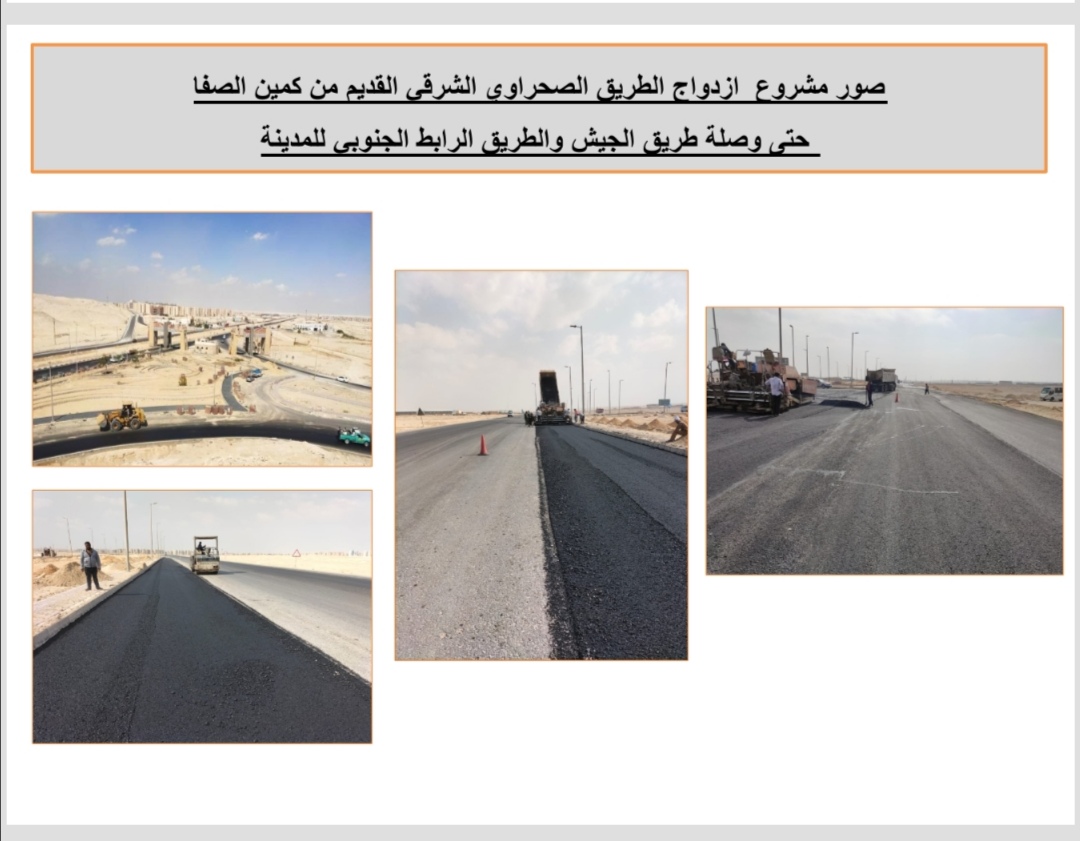 وشدد رئيس جهاز المنيا الجديدة، على سرعة استكمال أعمال مشروع ازدواج الطريق الصحراوي الشرقي القديم من كمين الصفا حتى وصلة طريق الجيش والطريق الرابط الجنوبي للمدينة، مشيرًا إلى أن طول المرحلة 3.5 كم، وطول الطريق الرابط الجنوبي 6 كم، مؤكدًا على استمرارية العمل لسرعة إنهاء الأعمال في الموعد المحدد.