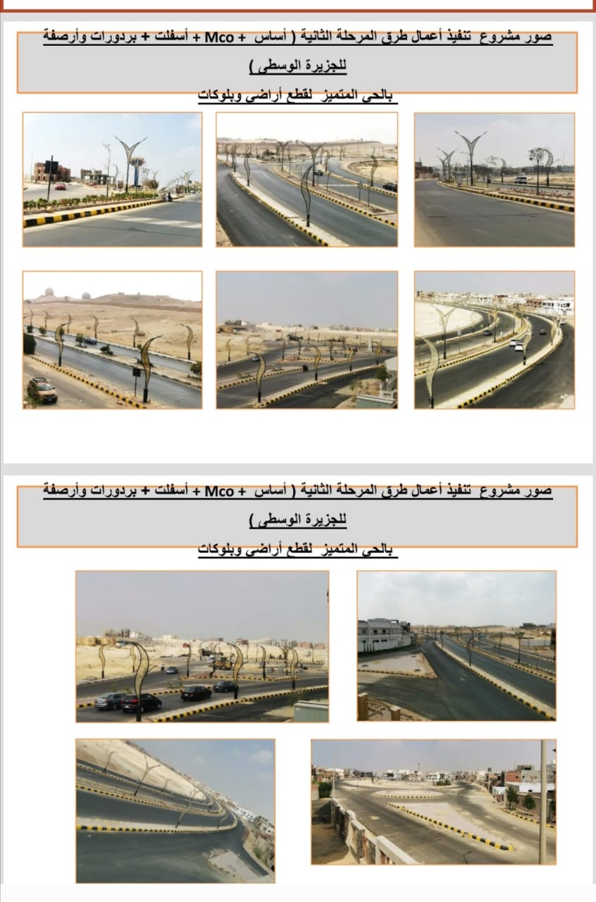وأوضح " عبدالعزيز "، أنه جارٍ الانتهاء من أعمال رصف طرق المرحلة الثانية ( طبقة أساس + Mco + أسفلت + بردورات وأرصفة للجزيرة الوسطى ) بالحى المتميز بطول 10 كيلو مترات للمرحلة، وذلك لخدمة مجمع الكمبوندات وقطع أراضي وبلوكات منطقة الحي المتميز.