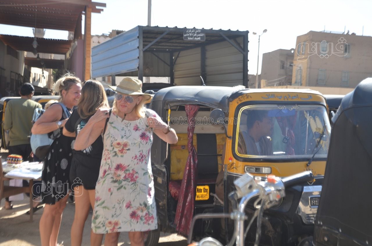 سائحون يستمتعون بركوب التوك توك لزيارة الأماكن الأثرية في الأقصر (فيديو وصور)