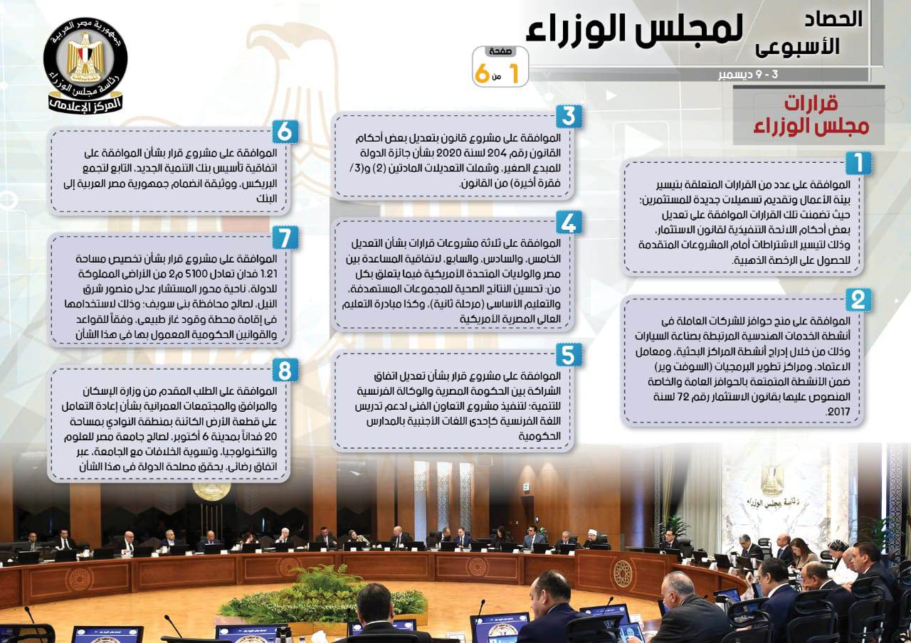 أبرز قرارات مجلس الوزراء الصادرة خلال أسبوع (إنفوجراف)