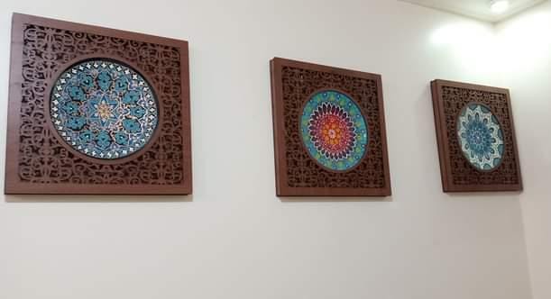 تابلوه خشب محيط بطبق خزف رسم يدوى بالألوان الزيتية الفرنسيّةِ بـ 590 جنيهًا