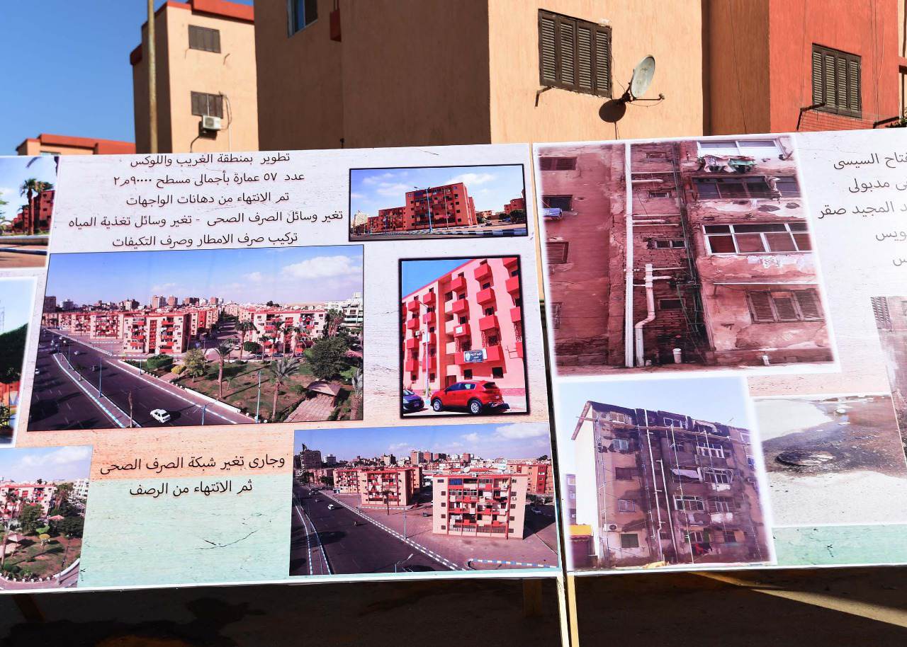 واستمع مدبولي إلى شرح من العميد إيهاب سراج الدين، السكرتير العام المساعد لمحافظة السويس، الذي أشار إلى أن المشروع يضم ٥٧ عمارة سكنية؛ حيث شملت أعمال التطوير دهان الواجهات، وتغيير وسائل الصرف الصحى، وتغيير مواسير المياه، وتركيب صرف المطر، وتركيب صرف التكييفات، وأرصفة الانترلوك، ورصف بعض المحاور القديمة.