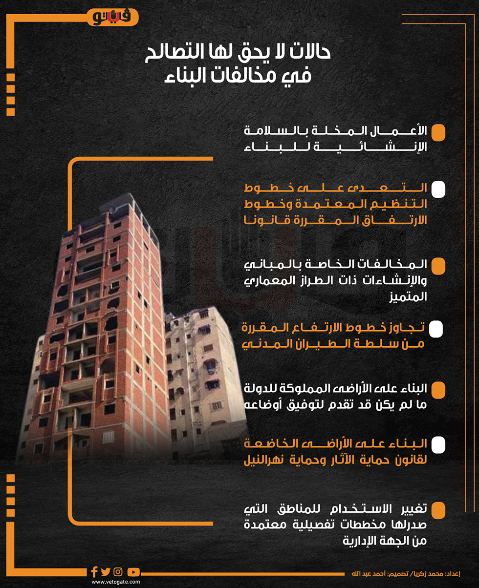 وجاءت المواد التصالح في مخالفات البناء على النحو التالي: