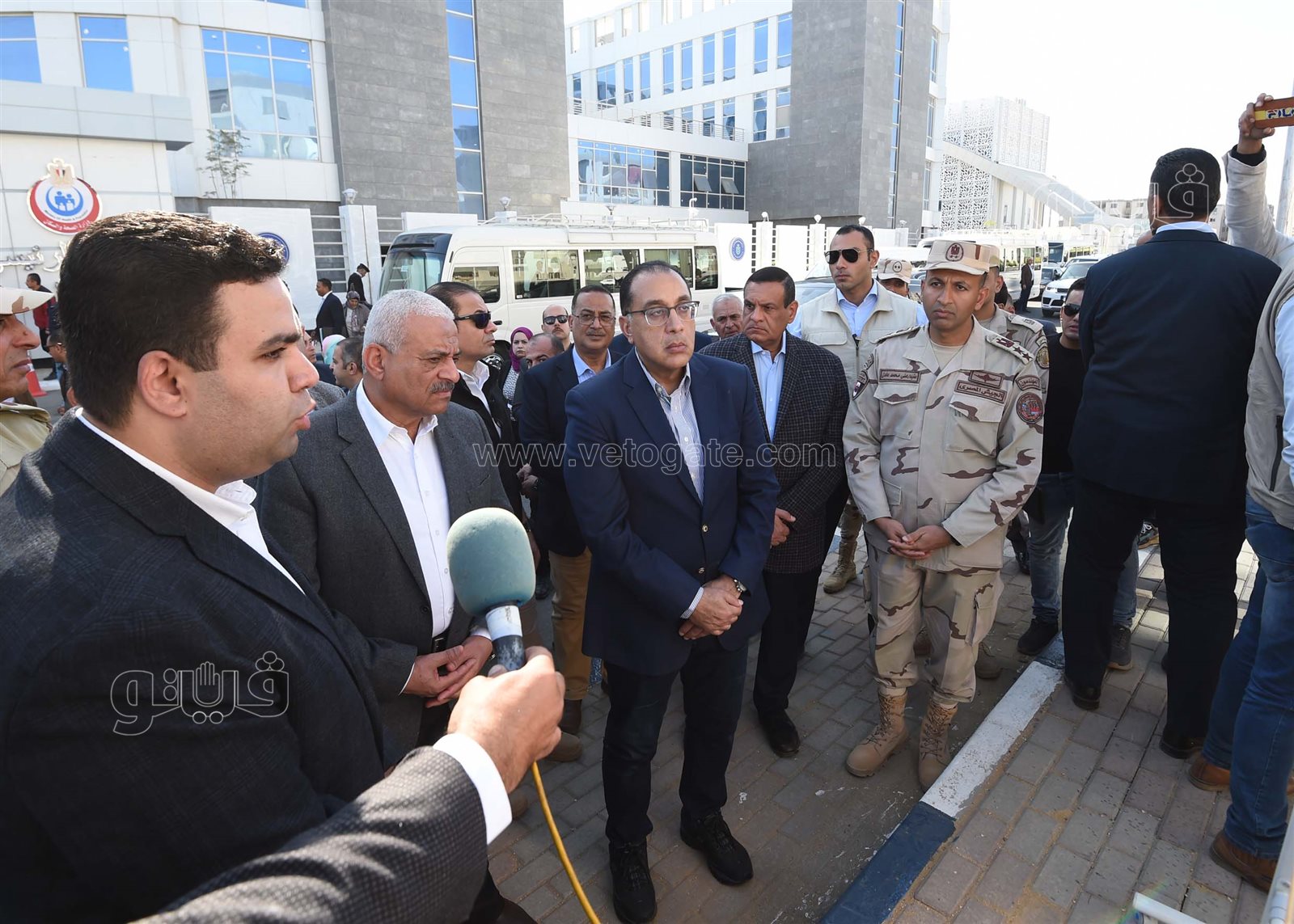 واستمع رئيس الوزراء إلى أحد المواطنين بالمنطقة، الذي تقدم بعدد من المطالب الورقية الخاصة بالسكان، وكلف رئيس الوزراء محافظ السويس ببحثها.
