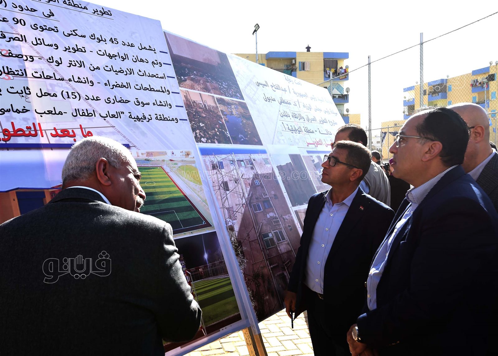 واستمع رئيس الوزراء إلى شرح من اللواء عارف البركاوى، رئيس حي عتاقة، الذي أكد أن المنطقة تقع بنطاق حي عتاقة، و بها 45 بلوكا سكنيا، تحتوي على 90 عمارة، على مساحة 49 فداناً.