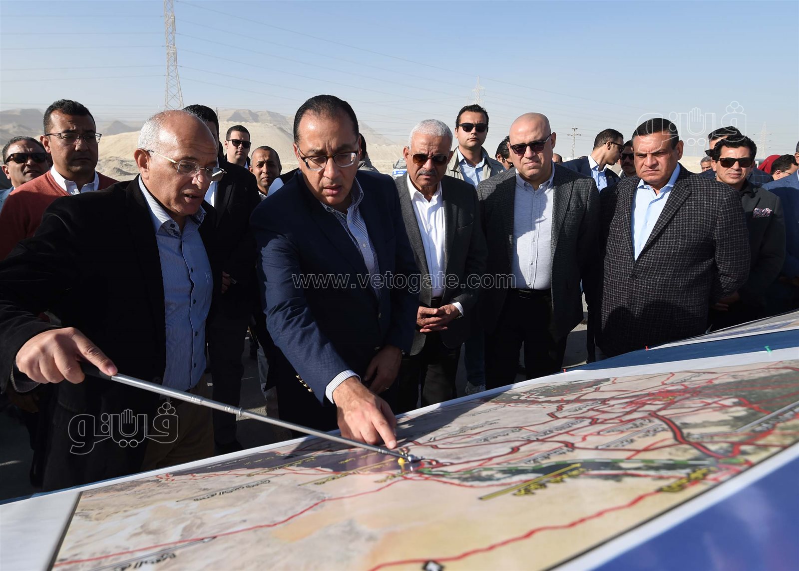 رئيس الوزراء يتفقد أعمال تطوير طريق السويس - العين السخنة بمنطقة عتاقة (صور)
