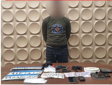 وعقب تقنين الإجراءات بالتنسيق مع قطاعات (الأمن الوطنى - الأمن العام – الأمن المركزى) وبمشاركة مديرية أمن القاهرة تم إستهدافه وضبطه حال تواجده بمسكنه وبحوزته (طبنجة غير مكتملة الأجزاء – كمية من مخدرى "الشابو والحشيش"– 2 ميزان حساس – 2 جهاز لاسلكى – سلاح أبيض "كتر" – كمية من الأكياس البلاستيكية – جراب طبنجة – مبالغ مالية "محلية وأجنبية"– 2 هاتف محمول).